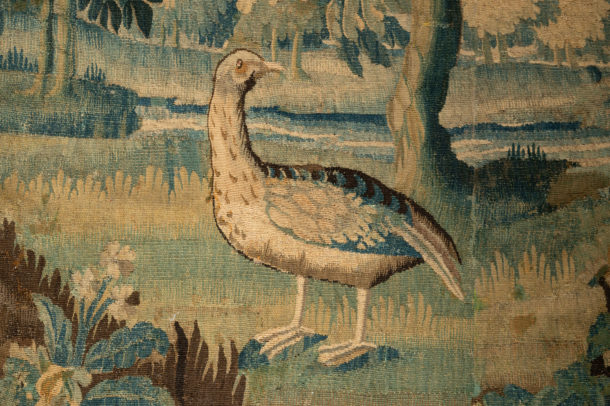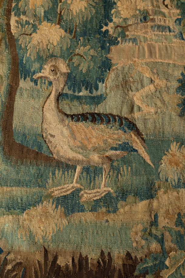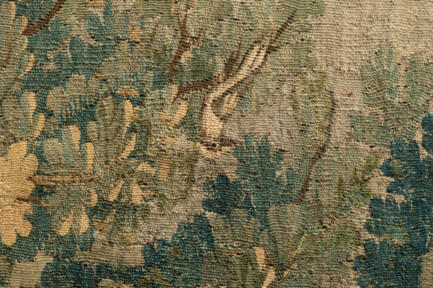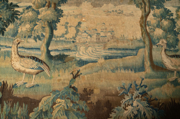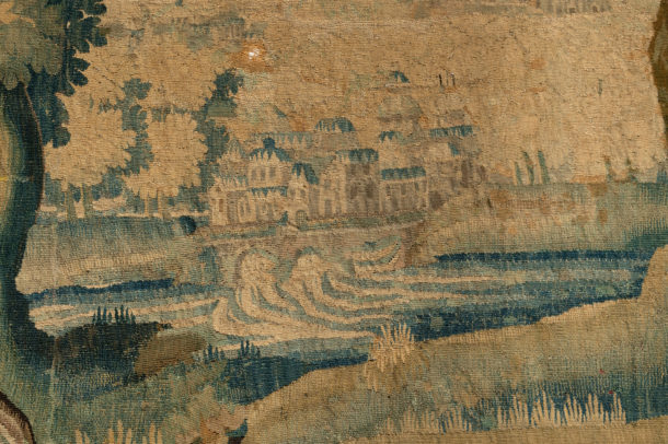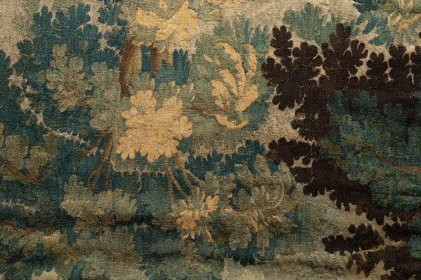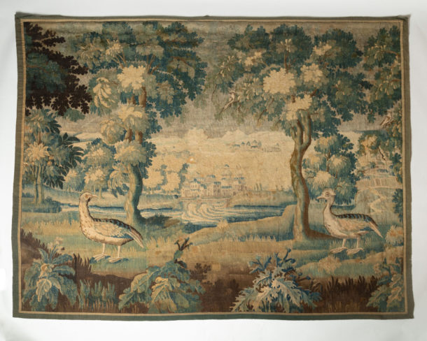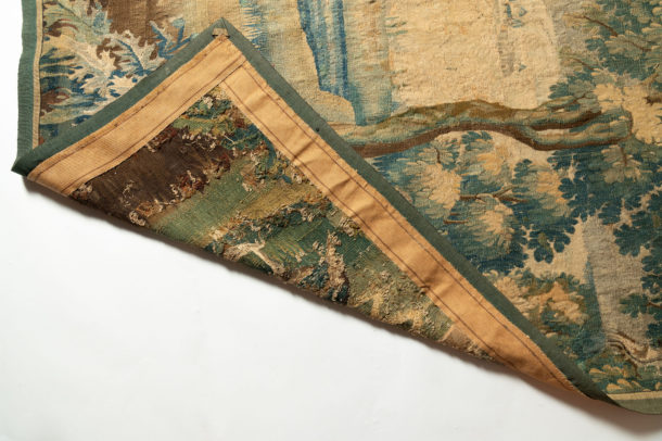 Late 17th Century – early 18th Century French Aubusson tapestry. Later boarder added in circa 19th Century. I would consider this to be in very good condition for the age with minor wear and small restorations over the years, all in keeping and to be expected on a period tapestry. Lovely colour tones. A wooden baton has been added, it is ready to hang.