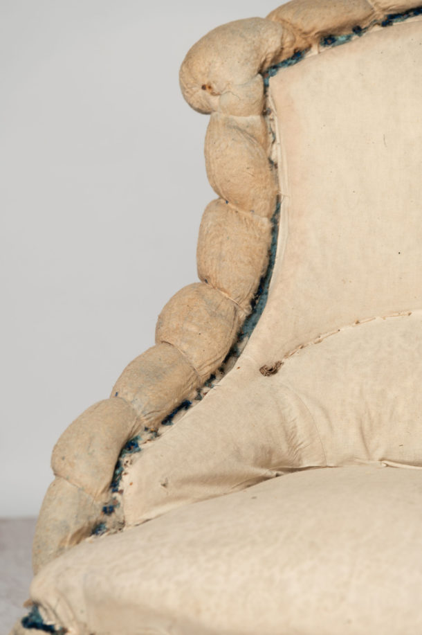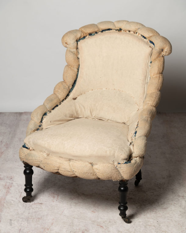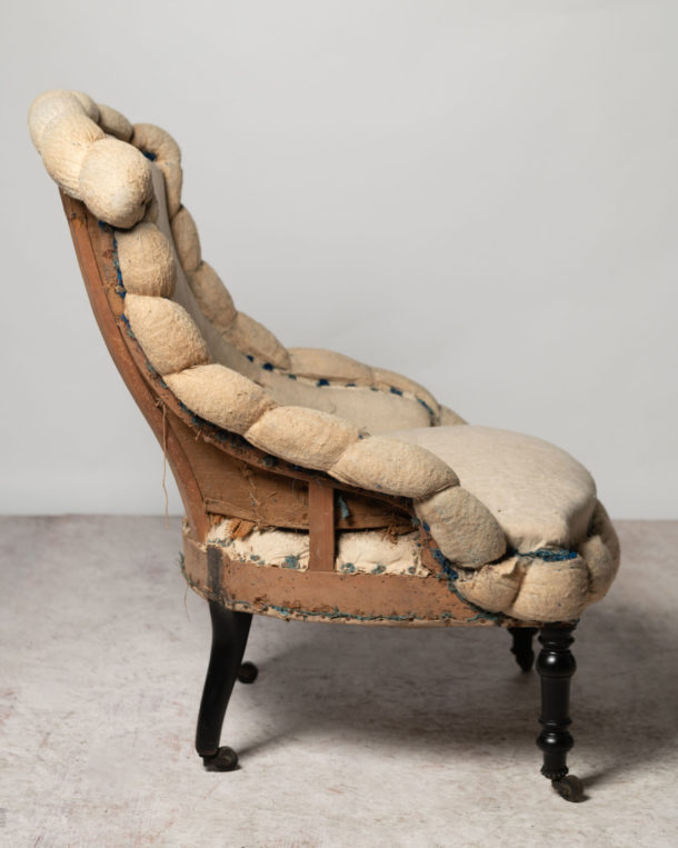 French piecrust slipper chair, ideal fireside, bedroom or occasional chair. Napoleon III. Floor to seat 15 inches. Seat depth 19 inches.