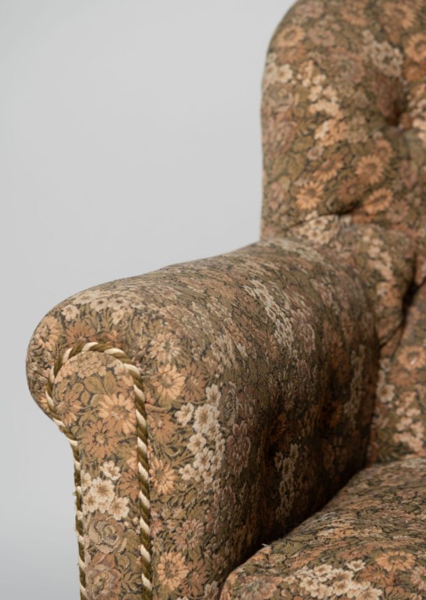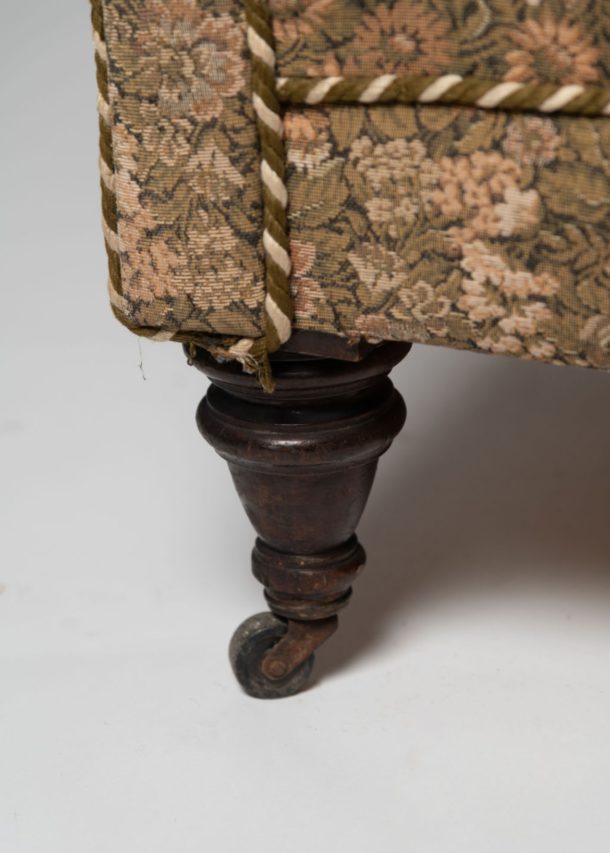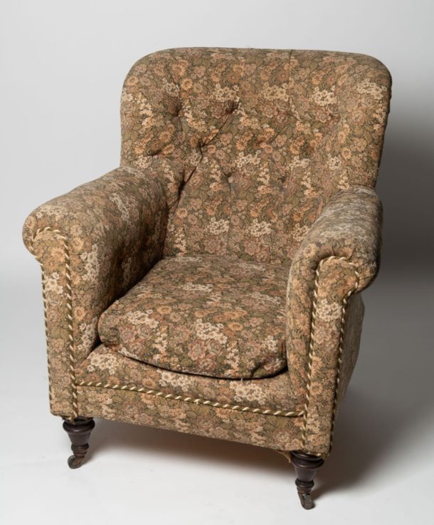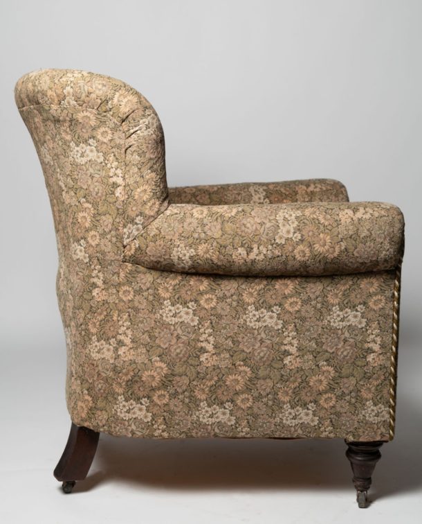 A nice shape and size deep antique English chair, for upholstery. Seat depth 22 inches. Seat height to the top of the cushion 17 inches.