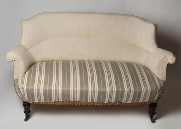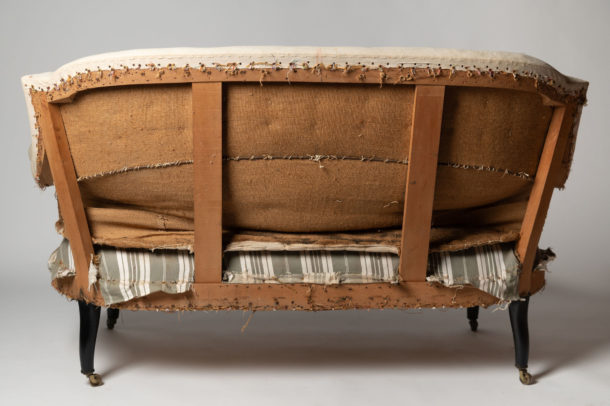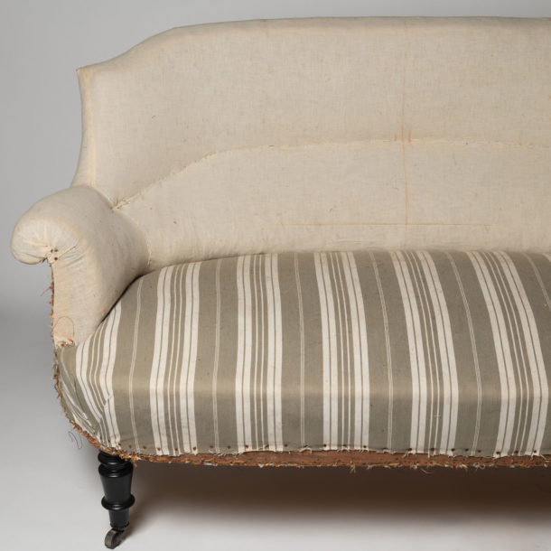 Antique French Napoleon III arch top sofa, a nice deep seat. Seat depth 23 inches.
