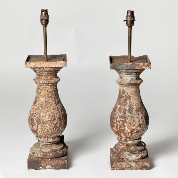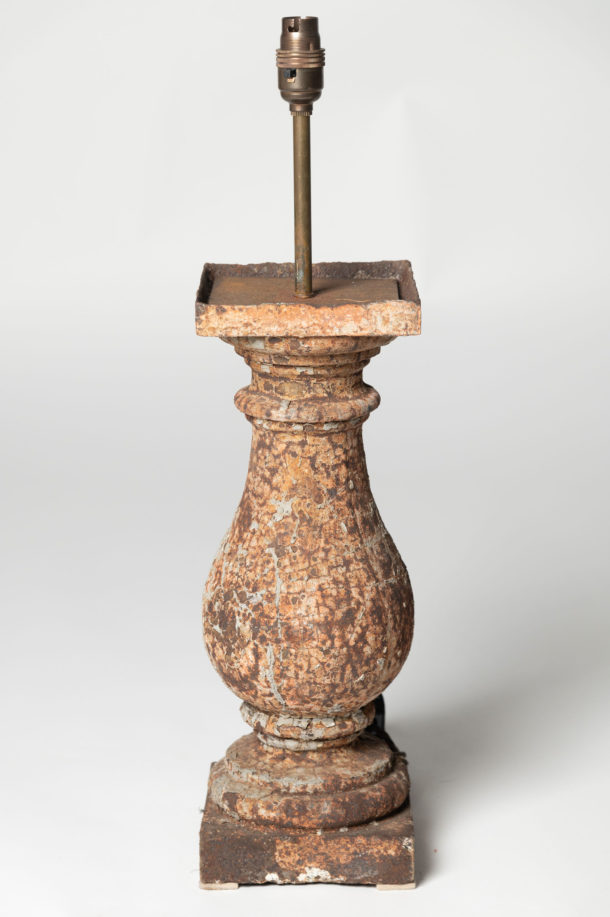 Early 19th Century French cast iron balustrades that I have had professionally converted to table lamps, wonderful original patina and paint. Fully rewired. Age related nibbles to the cast iron all adding to the charm of these early antique balustrades. Sold and priced individually at £385 per lamp. 2 now available. The below height is top to bottom, the balustrade is 15.5 inches high without the fixing.
