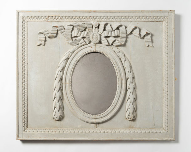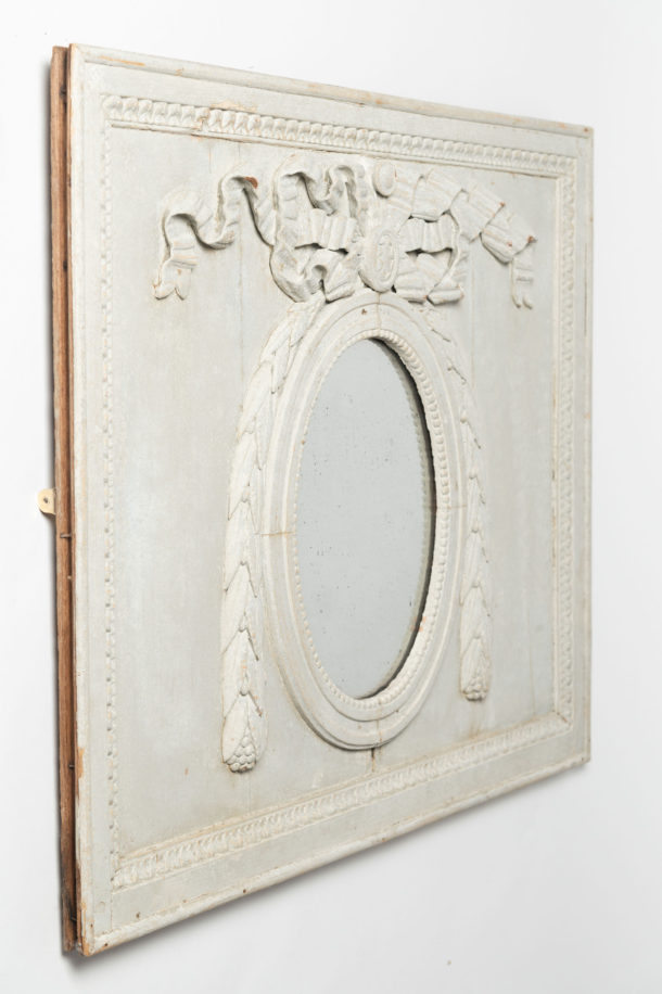 19th Century French boiserie panel with mirror, lovely carved detail, original mirror plate, original back.