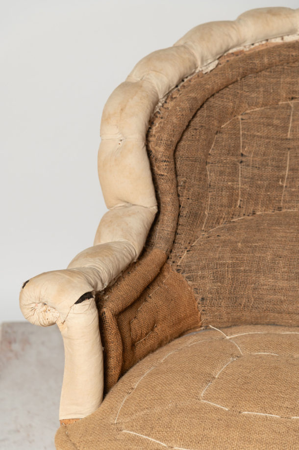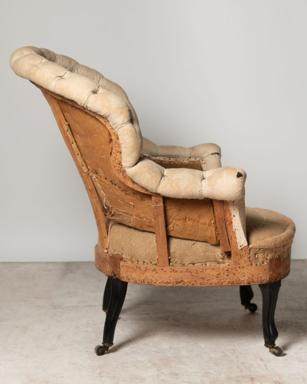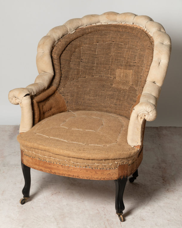 Unusual antique French Napoleon III chair, elegant legs. Seat depth 21 inches.
