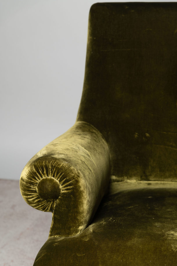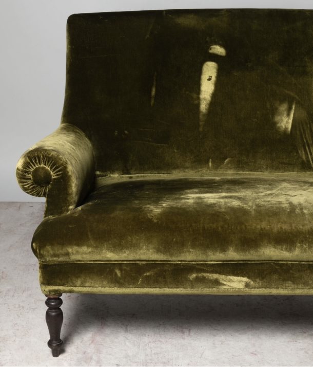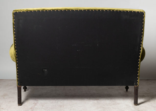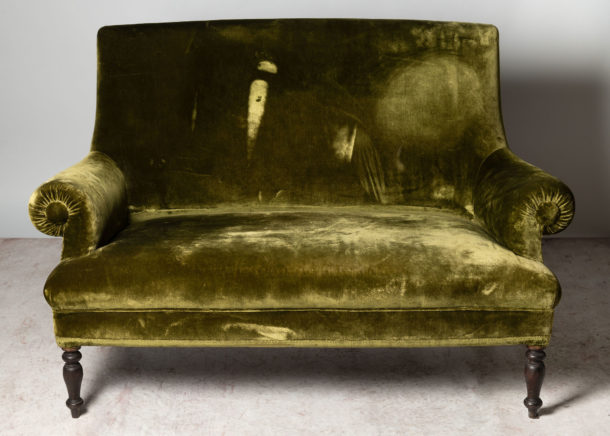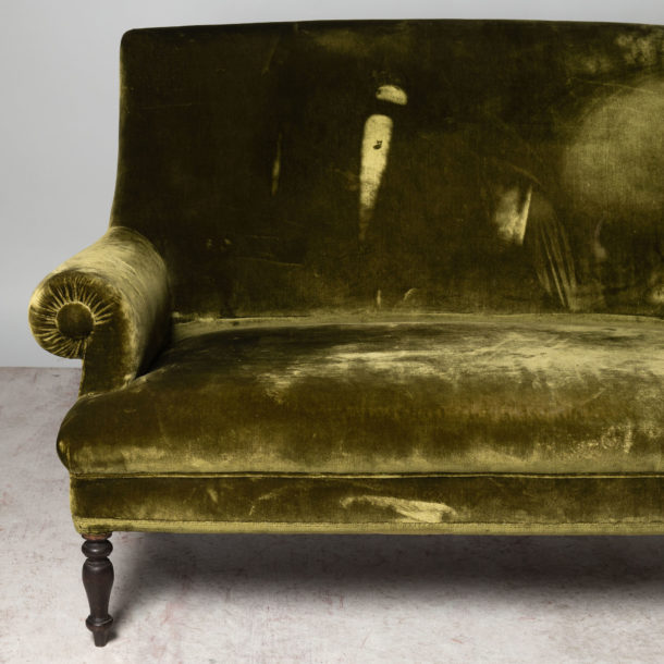 Antique French sofa, ready for your own upholstery. Seat depth 22 inches. Nice shape to the arms and front edge.