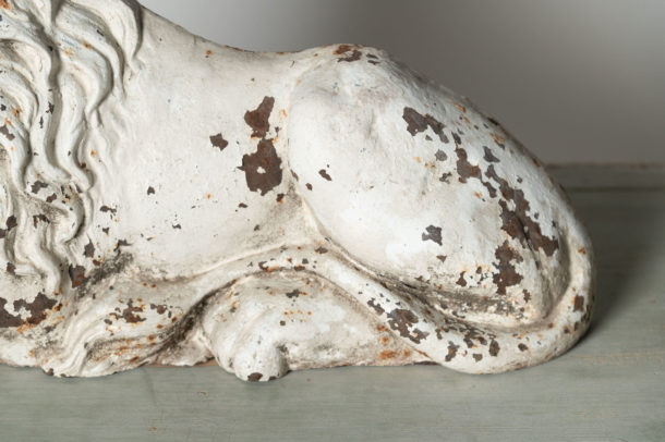 Charming c1880 English cast iron lion, original paint. No damage, freestanding, flat on the back.