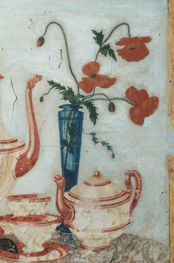 Antique hand painted paper panel