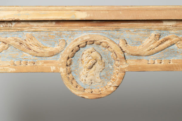 Pretty c1860 antique Swedish console table, freestanding, lovely wood carved decor, medallion head of the Swedish king Gustav III.