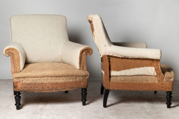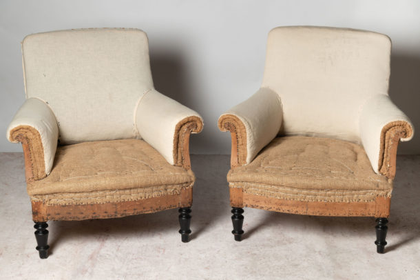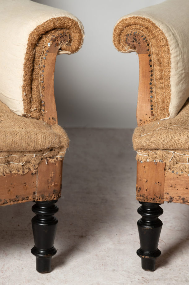 A nice shape pair of Napoleon III low back French chairs. Seat depth 22 inches.