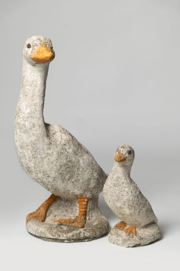 Charming gosling, original paint, reconstituted stone. Her mum is listed separately as shown in the last picture.