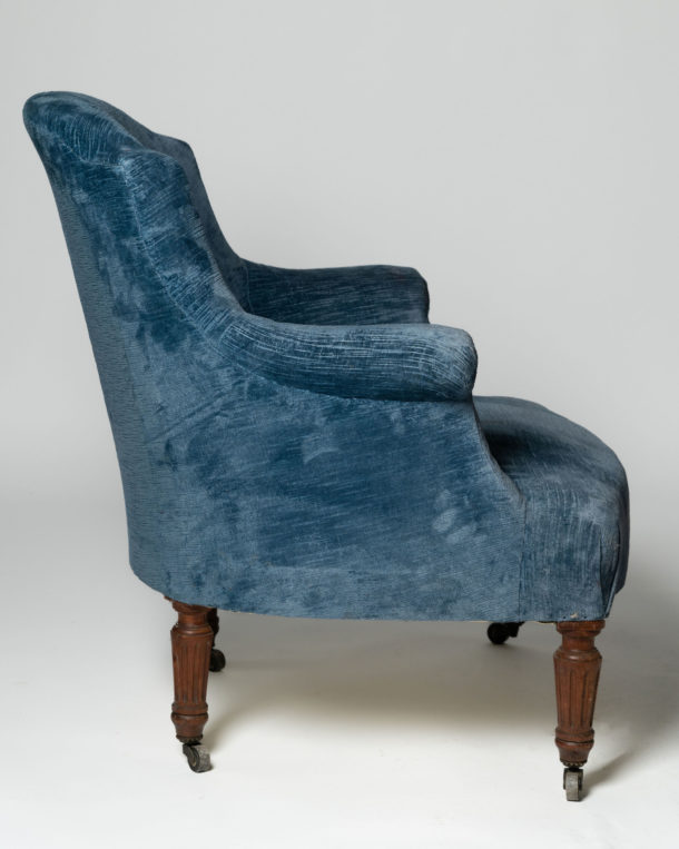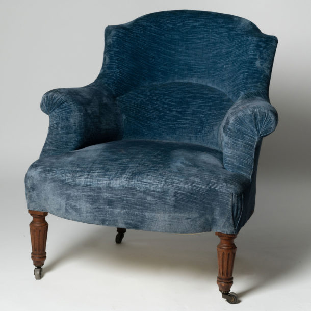 Antique French arch top chair, ready for your own upholstery. Seat depth 22 inches. Nice reeded legs.