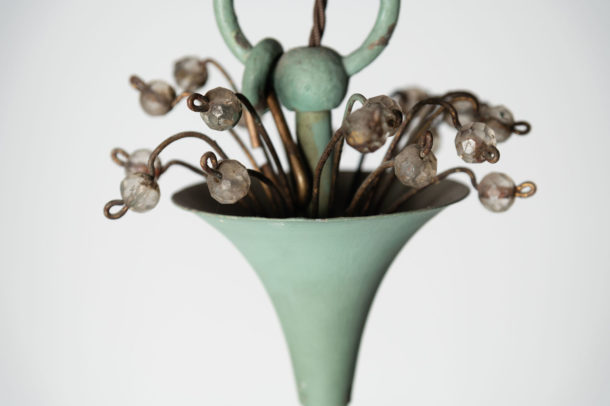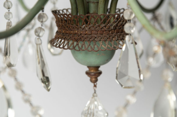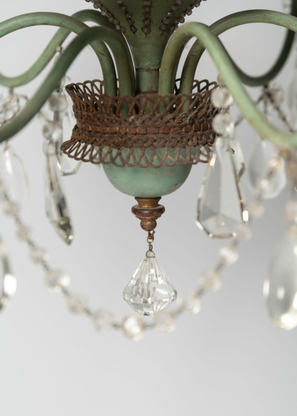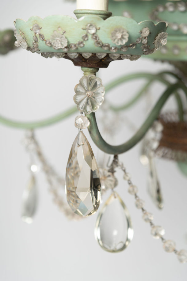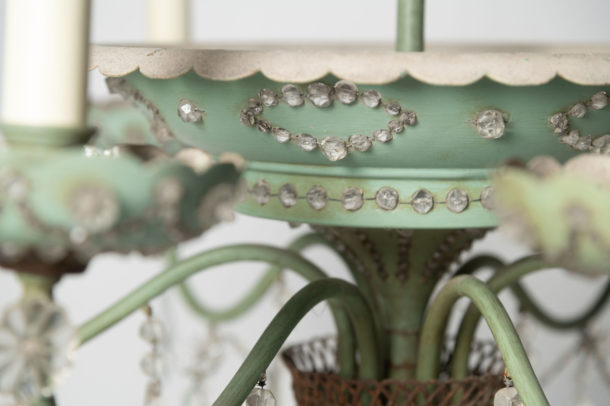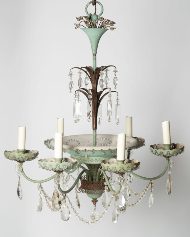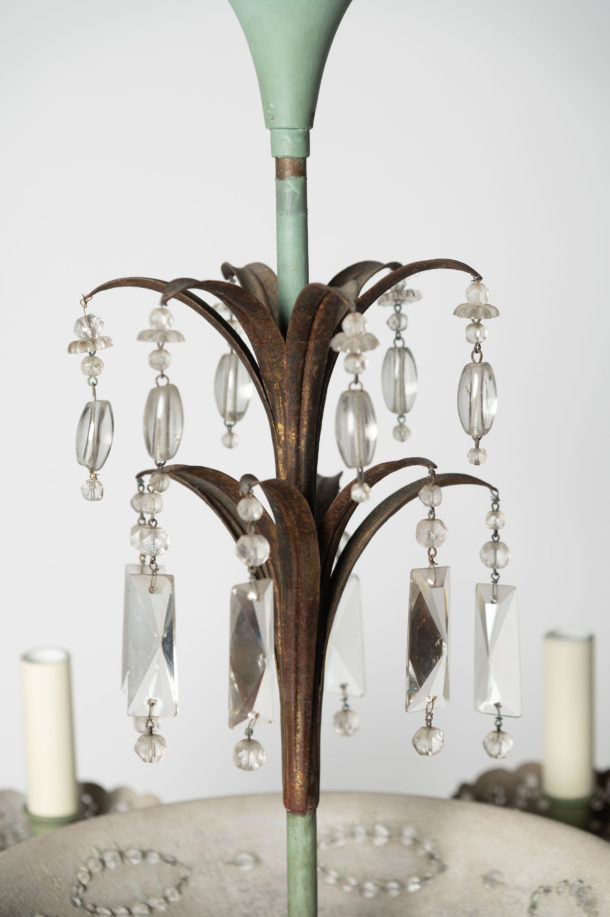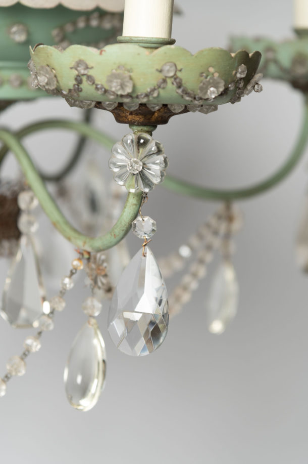 Exceptional French tole chandelier, fully rewired, original paint, soooo pretty. The below height does not include any chain.