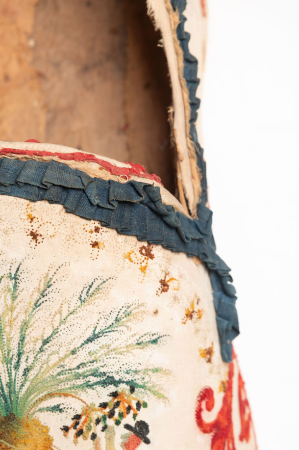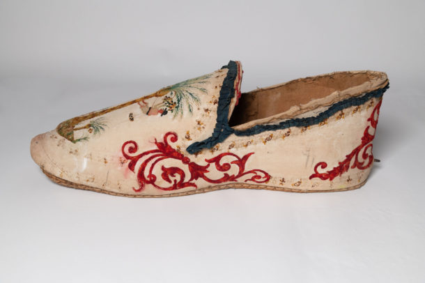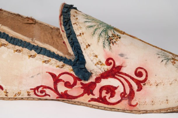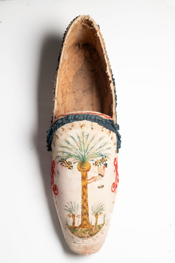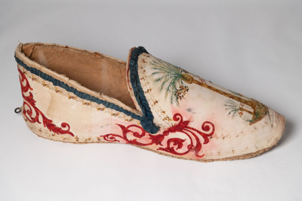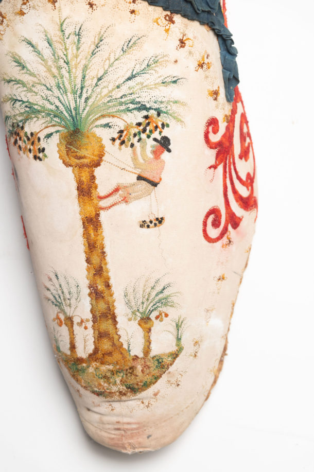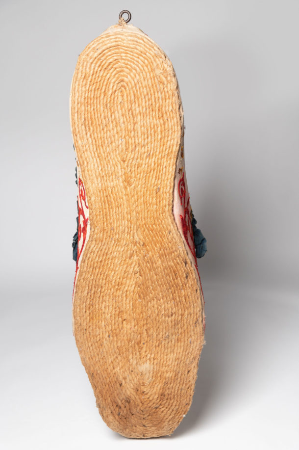 Fabulous giant shoe shop display shoe. Original hook to hang. Amazing embroidery. Purchased in Provence.