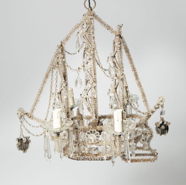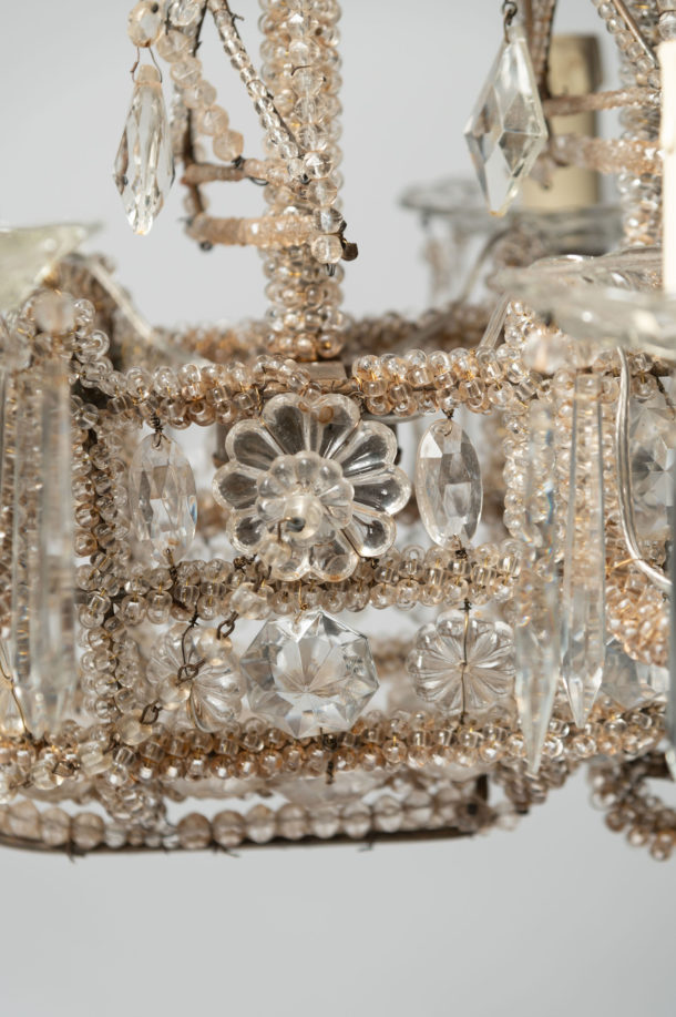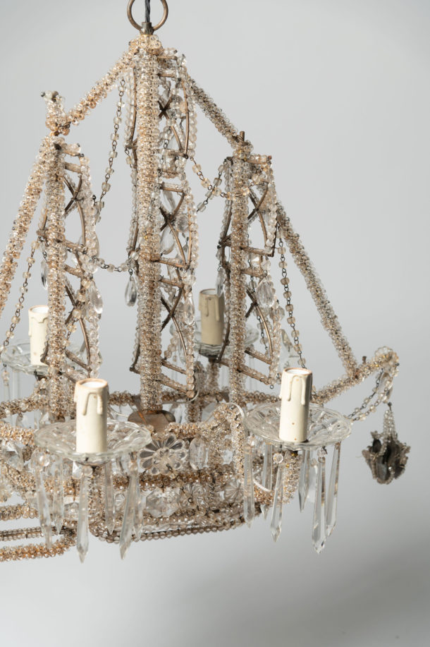 Italian ship – galleon chandelier, fully restored and rewired. Beautiful beaded detail.