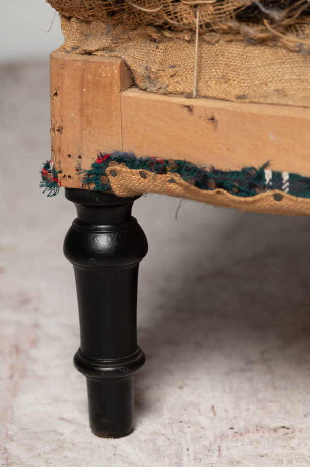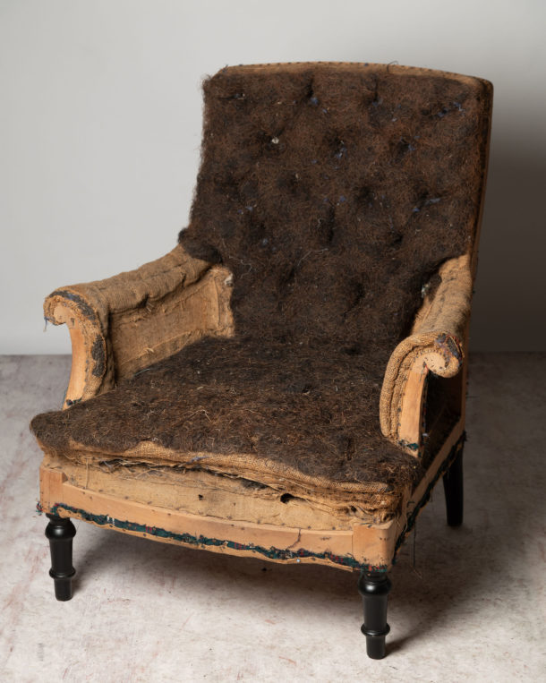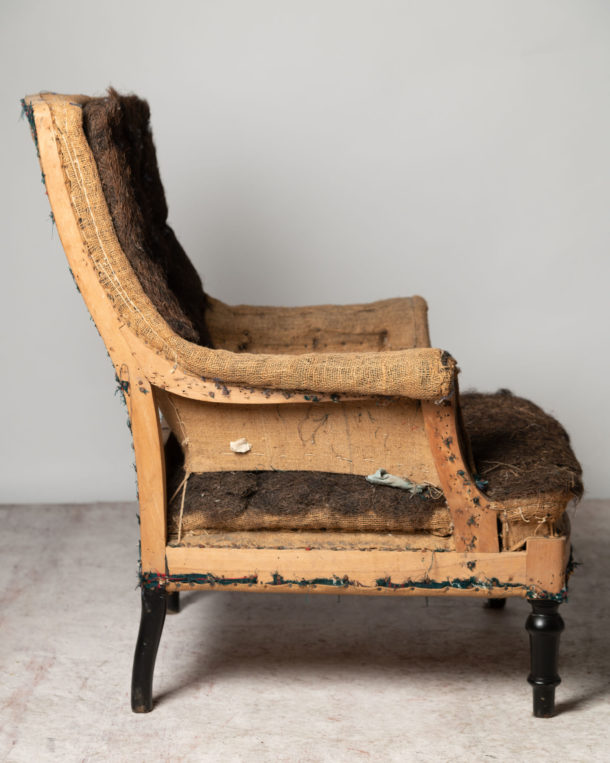 19th Century French Napoleon III chair, original horsehair stuffing, this could be upholstered with a buttoned back or plain back. Seat depth 22 inches. Structurally sound, it has just stripped scruffy and has been priced accordingly, all standard work for your upholsterer.