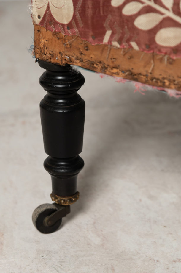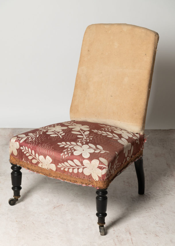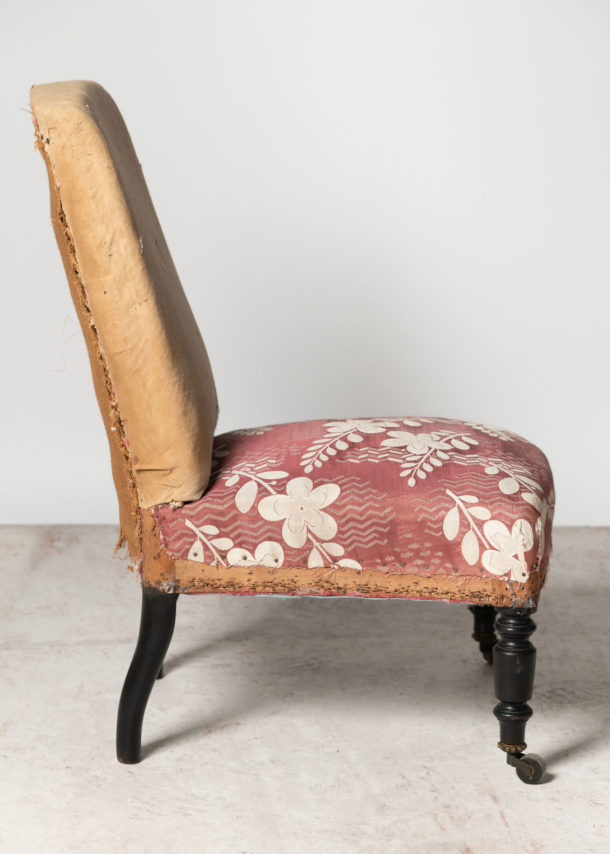 19th Century French Napoleon III slipper chair, ideal fireside, bedroom or occasional chair. Seat depth 17 inches, floor to seat 14 inches.