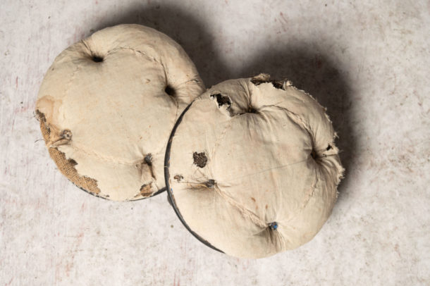 Rare pair of small 19th Century Napoleon III buttoned footstools. (this is only the 2nd pair I have sourced in years of selling chairs)