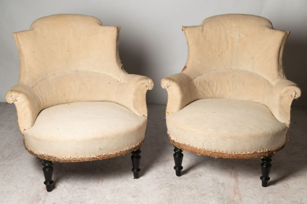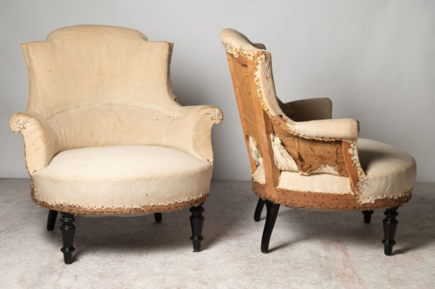 Arch top pair of antique French chairs, nice shape with a wider seat. Seat depth 21 inches.