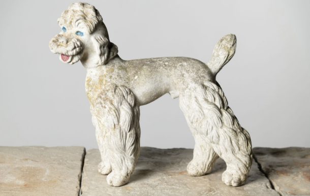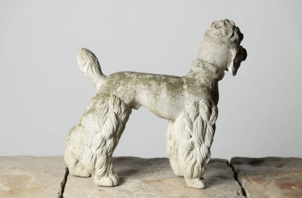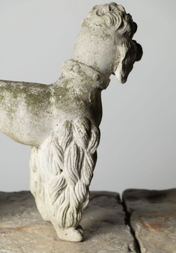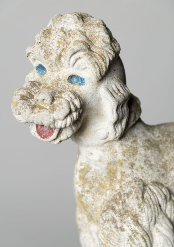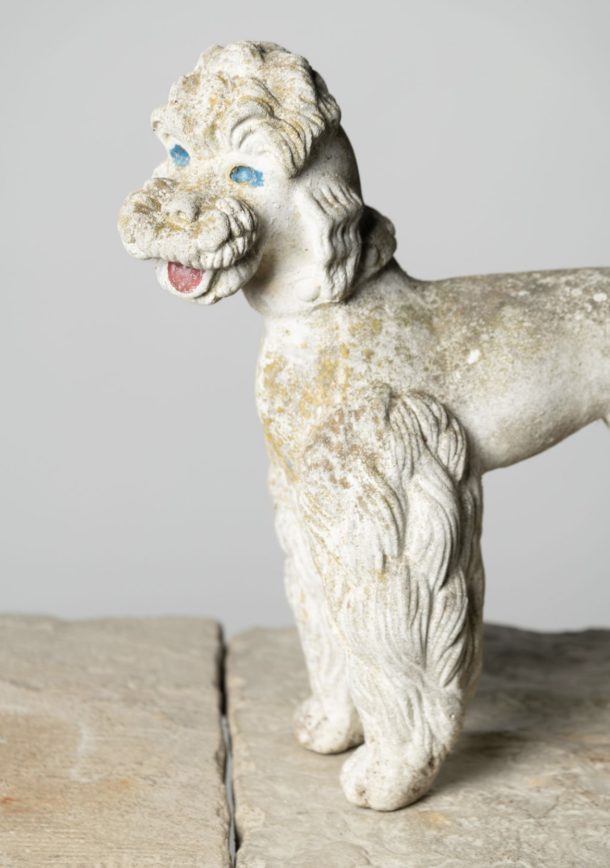 Charming blue eyed poodle, reconstituted stone, sourced in France.