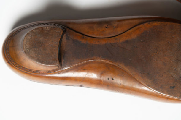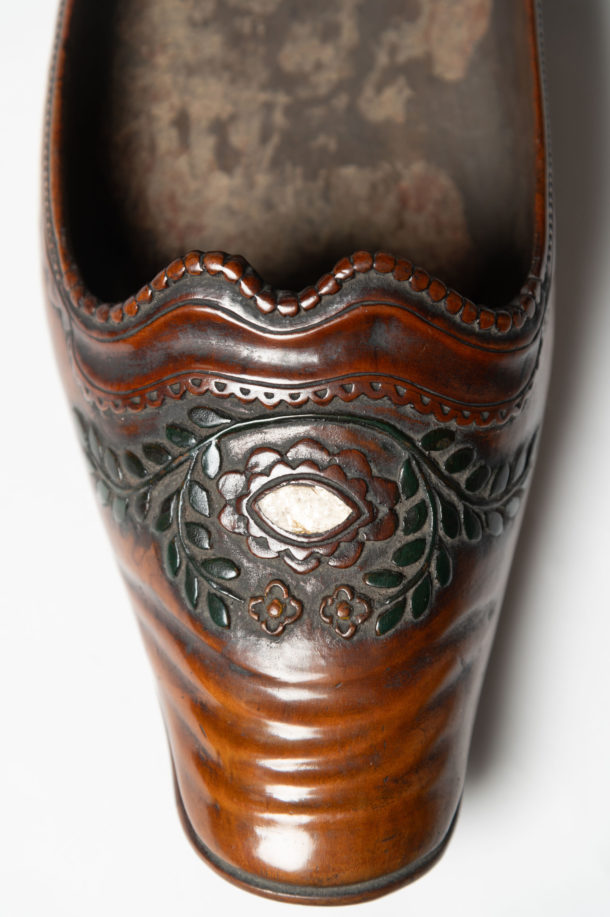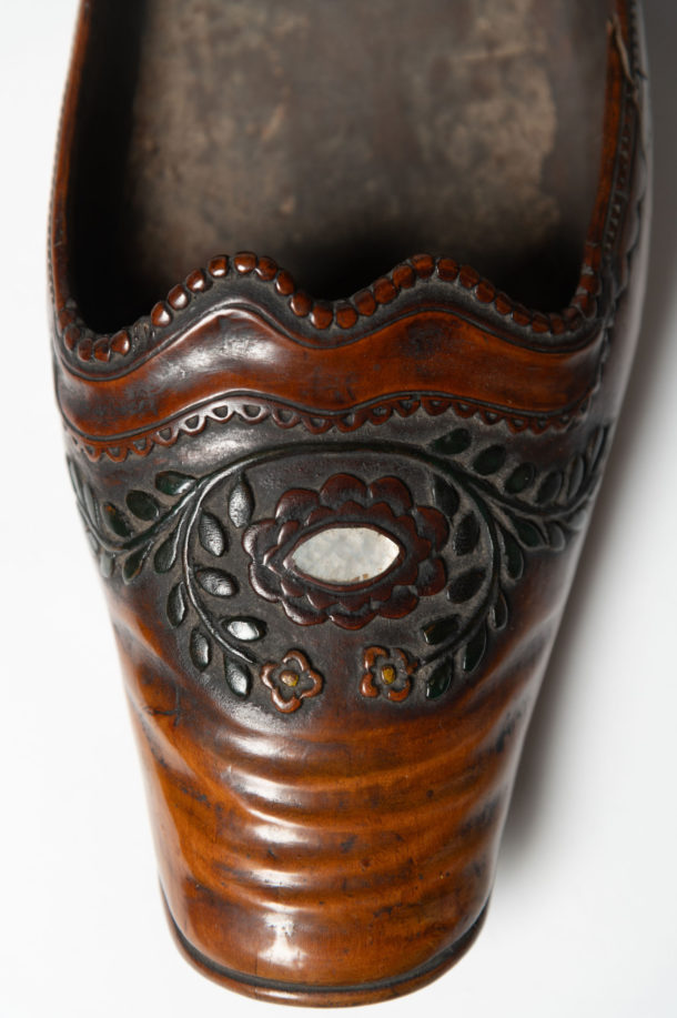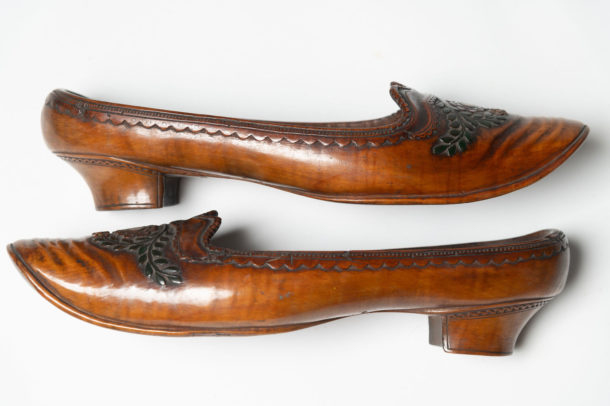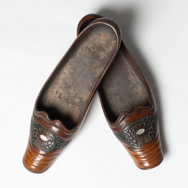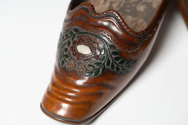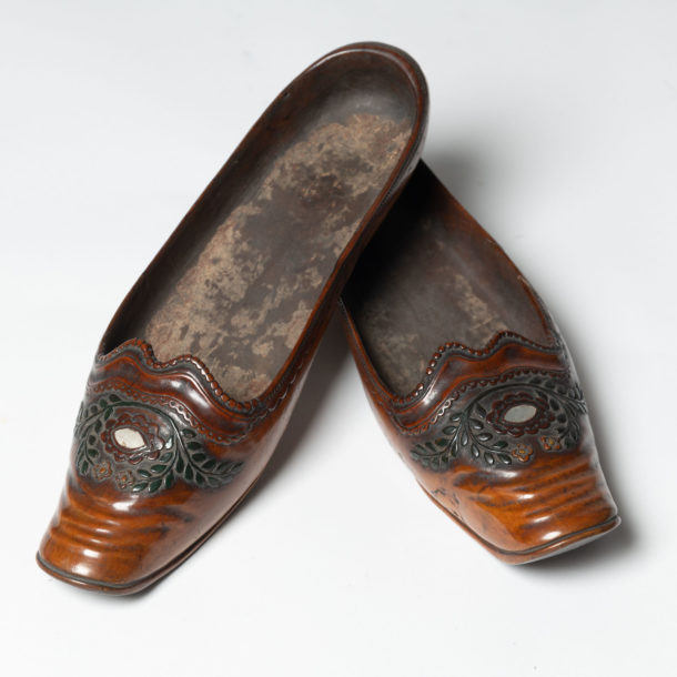 A rare pair of gentleman’s antique wooden shoes, exceptional quality, continental, mother of pearl inlay, I feel they would of had a liner and been worn maybe as a ceremonial shoe, could they be aristocracy ?. I have not seen anything like it before, they are wonderful.