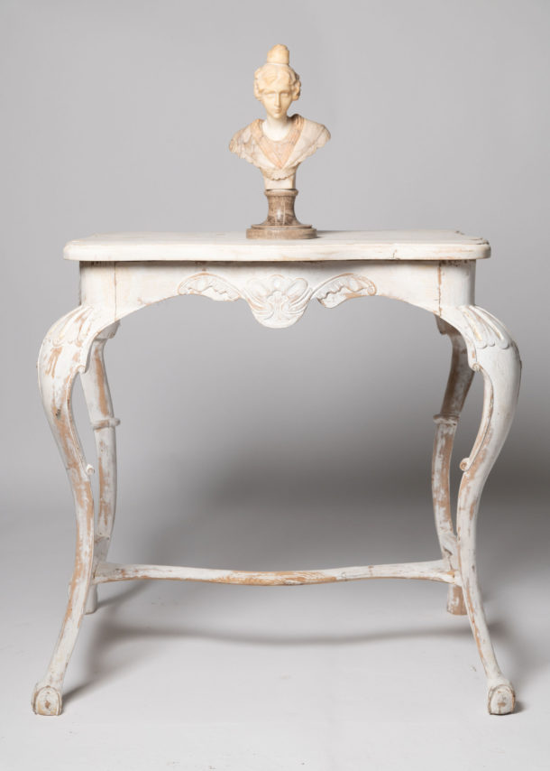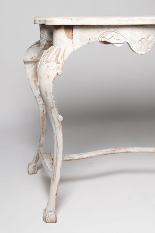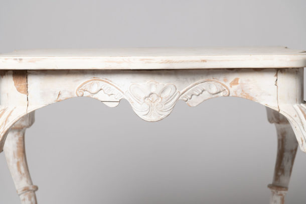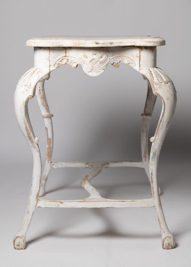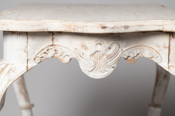 Antique Swedish table. Length of table top 29 inches, depth of the top 20 inches. both sides shown in the photos, carved detail to all four sides.